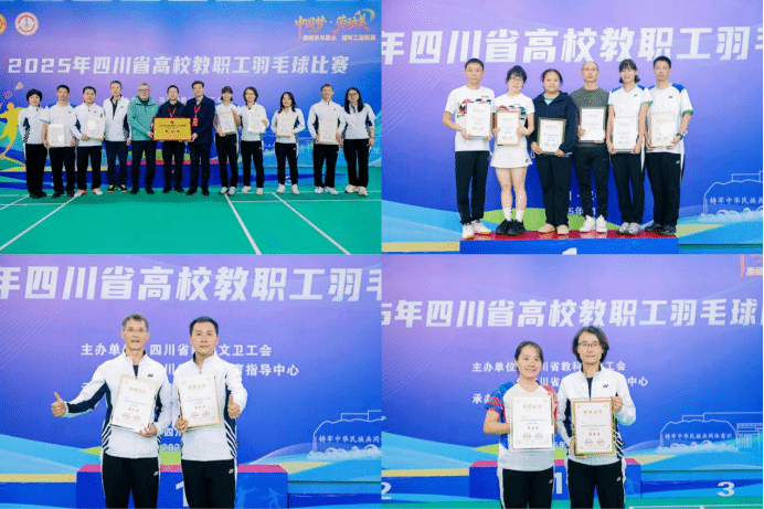 2025年11月7日至11月9日,由省教科文卫工会,省社会体育指导中心主办的“2025年四川省高校教职工羽毛球比赛”在西南民族大学航空港校区成功举行。我校组织教职工参加本次比赛并取得优异成绩。