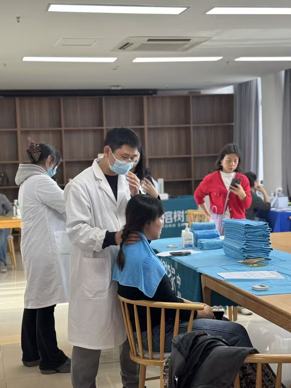 头肩舒压与眼部护理体验区格外受欢迎。理疗师们以柔和而有力的手法,为老师们松解肩颈与头部的紧张肌肉,促进气血循环。许多老师体验后,感觉“肩头轻松了,眼睛也明亮了”,现场还有草本茶饮供老师们随时取用,润泽身心,让参与者在这段专属的宁静时光里,真切感受到了身体的重新通畅与放松。