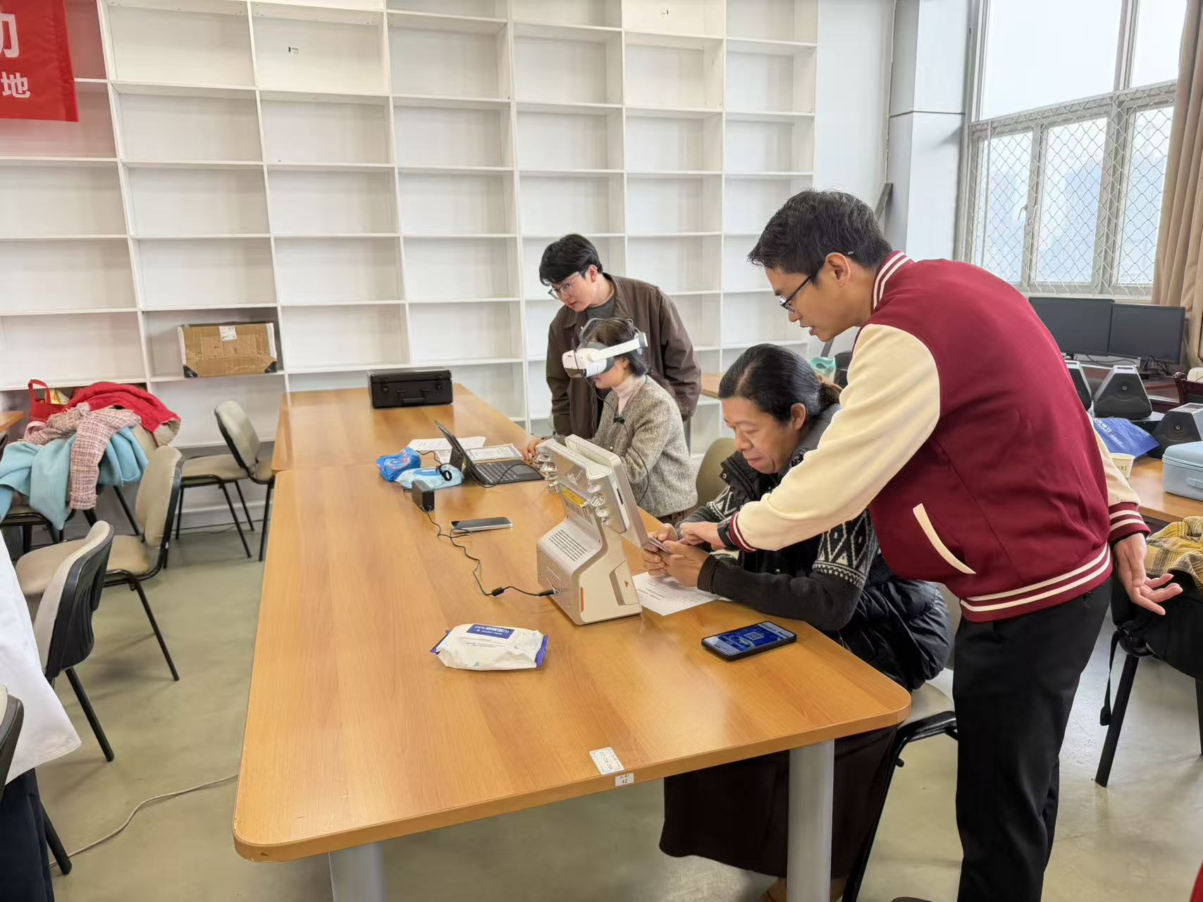 本次活动是校工会年度教职工健康促进系列活动的开篇之作,旨在以传统中医智慧与现代健康科技相结合的方式,为广大教职工送上一份春日的殷切关怀。活动精心设置中医问诊、体质辨识、头肩舒压、明眸护理、草本茶饮等传统调理项目,同时引入健康E体机、脑健康风险评估、AI中医目诊仪等前沿设备,为参与者提供全方位、多维度的健康服务。