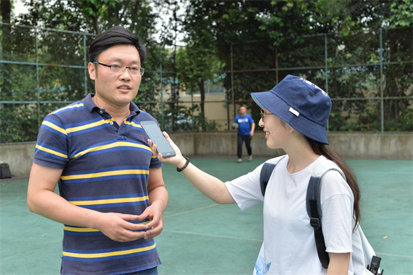 答:这次比赛我作为参赛选手,还是比较兴奋和激动的。我的感受一方面是参赛前,作为选手的我们要练习,保证每天晚上六点到八点之间老师们能组成一个队练球。另一方面,在比赛过程中,不论是输球还是赢球,都能增强我们团队的凝聚力,如果输球了,大家就一起总结,赢球了就会一起庆祝。平时同事们之间的接触机会不多,但是正是因为这次比赛为契机,彼此之间的距离拉近了。