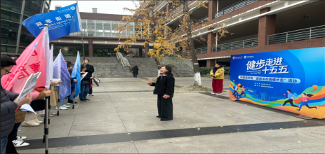 热身结束后,健步走队伍正式出发。老师们三五成群,随着系部旗帜,沿着规划路线,漫步于铺满银杏黄叶的冬日校园。沿途大家畅谈交流,欢声笑语,气氛轻松愉快,成为校园一道流动的风景线。途中提前设置的彩色指示牌清晰明了,为老师们指引着路线。